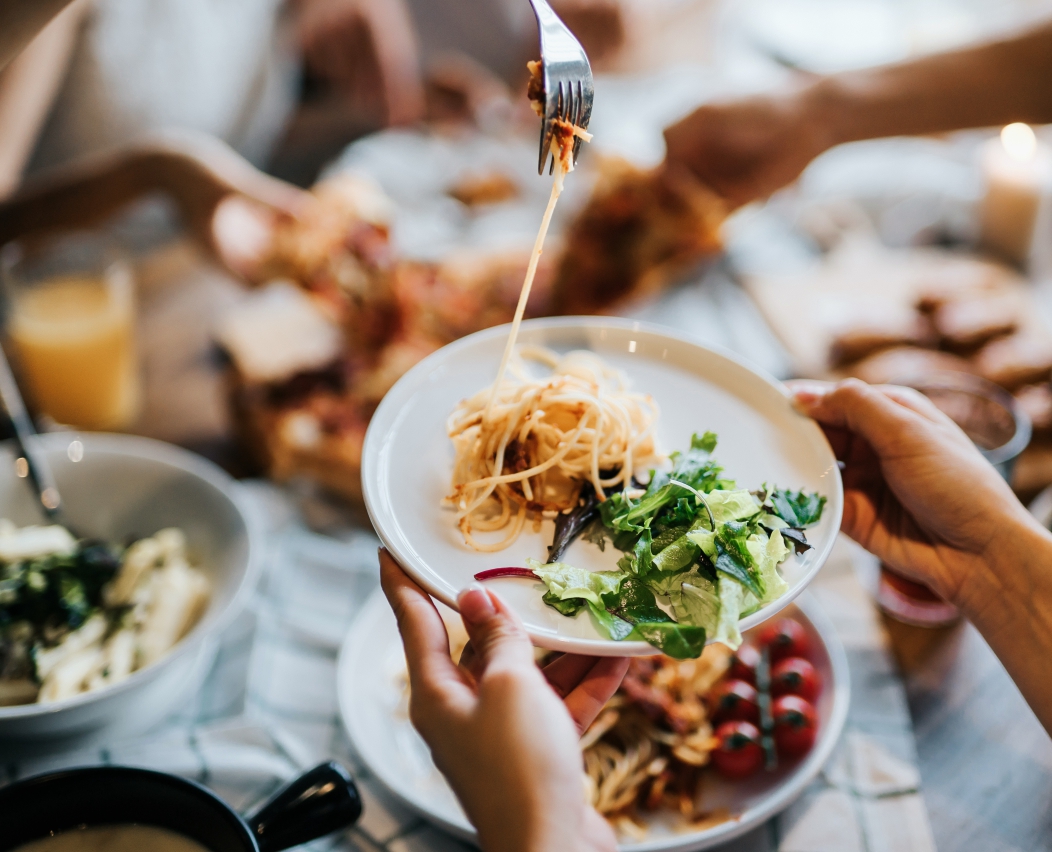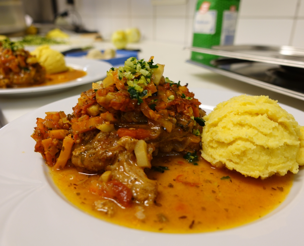 Zur Auswahl: ein 3-Gang-Menü oder eine einfachere Variante – Pasta oder Knödel des Tages, immer mit Salat und Dessert.